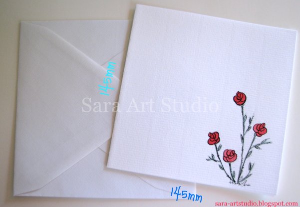 I paint it on 200g weight paper card using watercolours and ink. The Wild Red Rose Card fit perfect every needs for an elegant events, thanks to its simple design and bright colours.